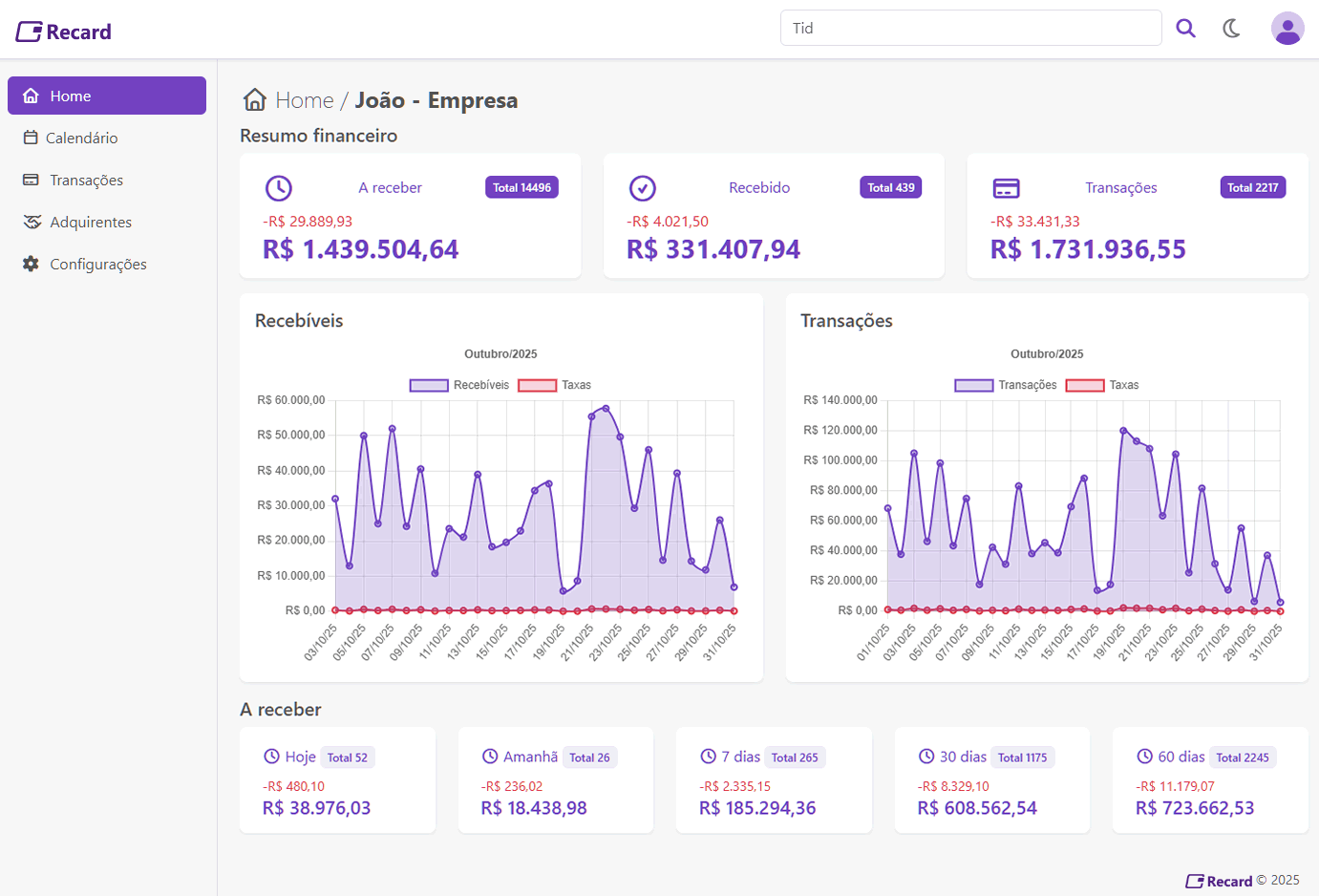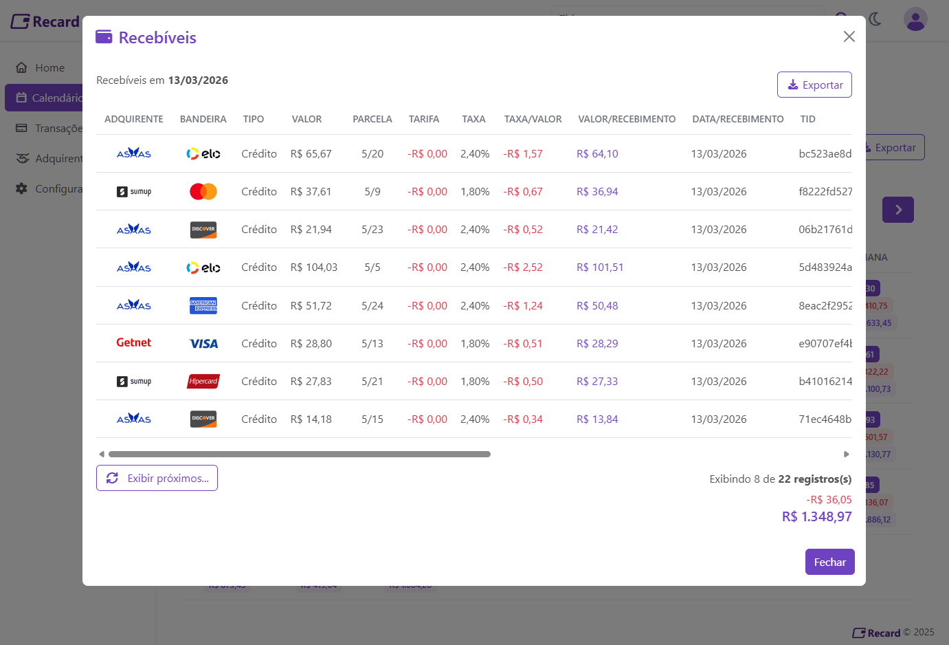 O acompanhamento dos seus recebíveis pelo Recard facilita no monitoramento do seu fluxo de caixa