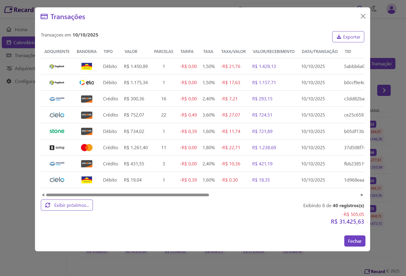 Utilize o Recard para cadastrar suas transações de cartão autorizadas pelos adquirentes, e acompanhe os seus recebíveis de forma clara e intuitiva, por apenas R$ 50/mês.