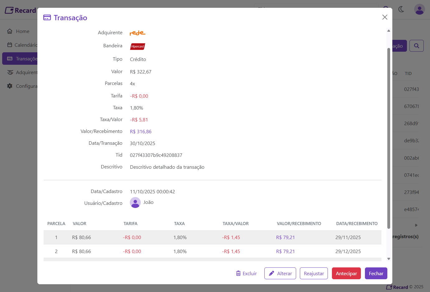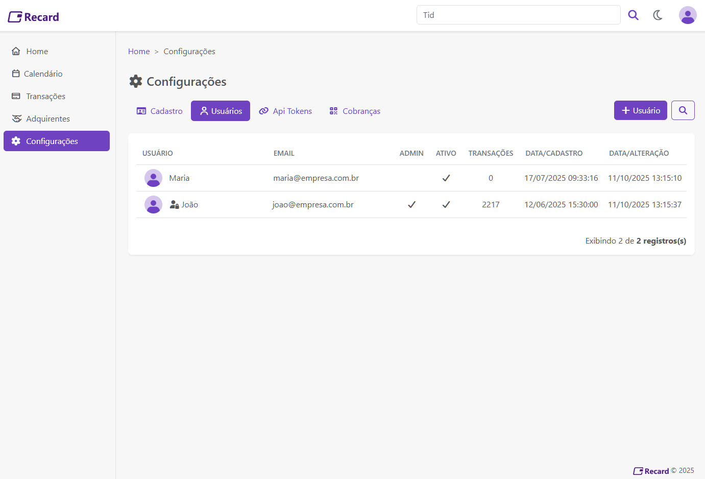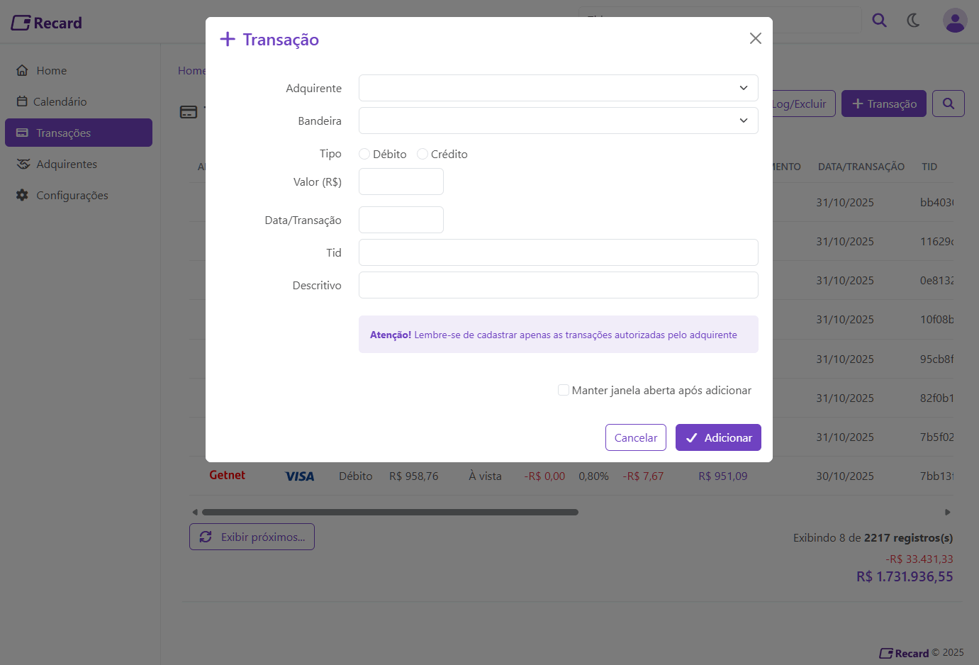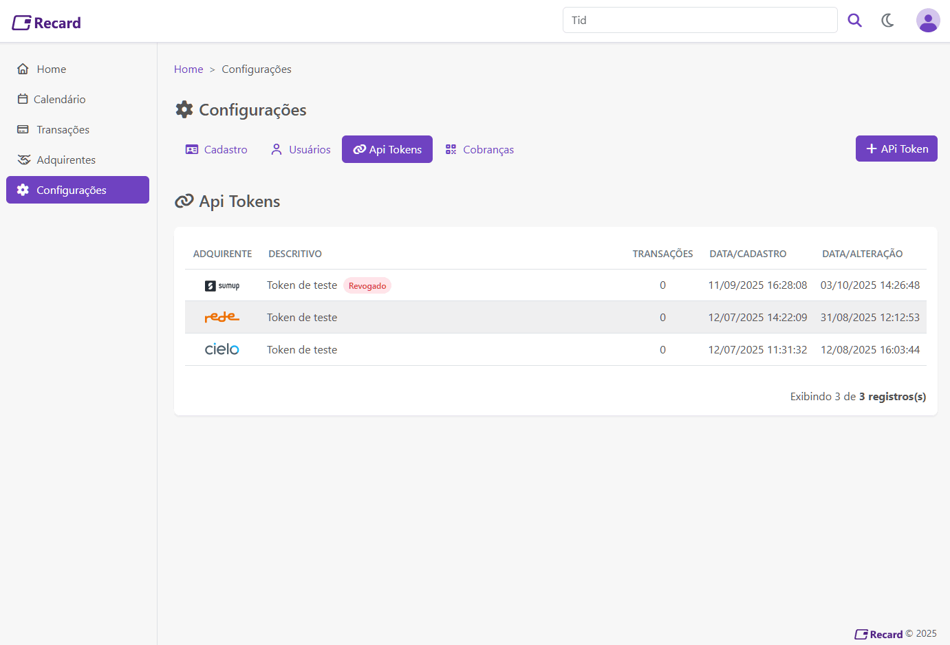 O Recard permite cadastrar múltiplos adquirentes. Assim você pode administrar em um único local todas as suas transações, independente do adquirente.