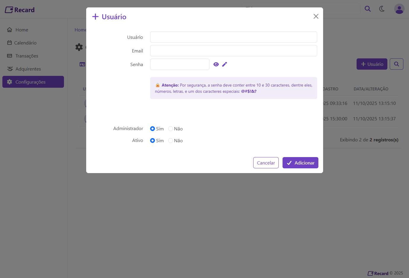 O Recard permite cadastrar múltiplos usuários, de modo que você possa disponibilizar o acesso a quem desejar.